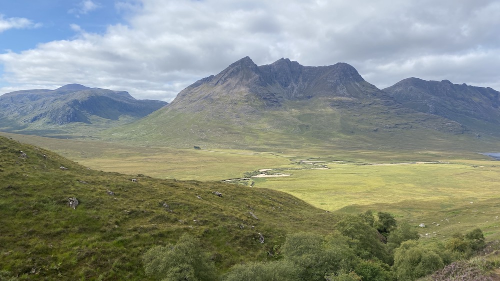 The track undulates and winds a little but fairly early on you can see the Corbett, Beinn a’ Chlaidheimh rising ahead of you among many other magnificent mountains.